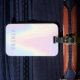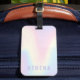 Trendy Gepäckanhänger mit weichem pastellfarbenem Regenbogen-Hintergrund und Ihrem Namen in leicht lila.