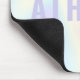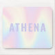 Trendy, personalisiertes Mauspad mit weichem pastellfarbenem Regenbogen-Hintergrund und dem Namen in heller lila Farbe.