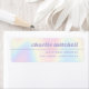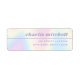 Rücksendeadressen-Aufkleber mit Ihrem Namen in einem Retro-Stil Schriftart und einem dünnen Rand zwischen Ihrem Namen und Rücksendeadresse. Der Text ist rechts ausgerichtet auf einem weichen pastellfarbenen Regenbogenuntergrund.