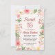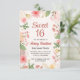 Weiche pastellfarbene pastellfarbene Aquarell Foto Sweet 16 Einladung Weich pastellfarbene pastellfarbene Aquarell Foto Sweet 16 mit hübschem Rosa, Lavendel, Terrakotta und grüne florale Aquarell, Goldkonfetti Glitzer, geometrischen terrarium goldenen Rahmen, ein elegantes Skript, und fügen Sie einfach Ihr Foto auf der Rückseite.
