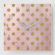 Weiche Rose Pink Gold Glitzer Glam Polka Dots Nied Quadratische Wanduhr