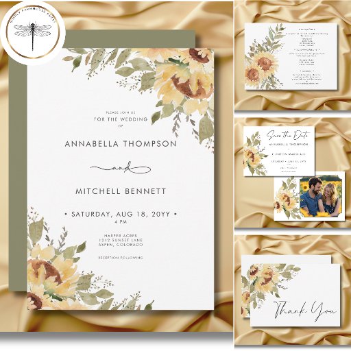 Feiern Sie Ihre Liebe mit unserer Boho rustikalen Hochzeitskarte, die dazu entworfen wurde, den perfekten Ton für Ihren besonderen Tag Set. Dieses Design mit lebendigen Aquarellfarben-Sonnenblumen in goldgelb, erdbraun und sanft grün, in anmutiger Lage in den gegensätzlichen Ecken, verbindet natürlichen Charme mit moderner Eleganz. Der gepflegte, zeitgenössische Schriftart fügt eine frische Touch hinzu, die sich ideal für Paare eignet, die die Schönheit und rustikale Romantik mühelos Liebe suchen. Sonnenblumengrafik erstellt von Verya Studios. Erstellt von der einfachen Farmhouse Press.