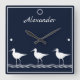 ein Teil der nautischen Dekoration der Marine weiche Sand Pipers auf weißem PILLOW auf einer Seite und Marine auf der Rückseite. Wassersport-Designs perfekt für die Küsten, Seeblick, Flussdekoration und mehr... Design von Sandy Closs.