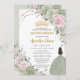 Weiche Seite Grün rosa Floral Gold Quinceañera Einladung