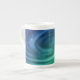 Porzellan Spezialität Tasse abstrakte digitale Komposition mit verschiedenen Farben in den Schattierungen des Wassers, entsorgt in einem glatten und eleganten Gefälle, das geht von intensiv, pur blau zu reinem Grün. Während sich die Farben vermischen, kommt ein rotierender Wirbel heraus, wo die Konturen aus Farben, Lichtern und Schatten bestehen. Der gesamte Wirbel wird mit diskreten Funkelflecken vollendet, die wie in einem sehr leichten Buh-Effekt auf dem ganzen Bild entsorgt werden. Die ganze Idee erinnert an frisches, klares Wasser, das blau in der Sonne oder grün in den kalten Gletschern verblasst.
