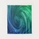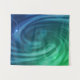 Tapestry abstrakte digitale Komposition mit verschiedenen Farben in den Farbtönen des Wassers, entsorgt in einem glatten und eleganten Farbverlauf, der von intensiv, rein blau zu reinem Grün geht. Während sich die Farben vermischen, kommt ein rotierender Wirbel heraus, wo die Konturen aus Farben, Lichtern und Schatten bestehen. Der gesamte Wirbel wird mit diskreten Funkelflecken vollendet, die wie in einem sehr leichten Buh-Effekt auf dem ganzen Bild entsorgt werden. Die ganze Idee erinnert an frisches, klares Wasser, das blau in der Sonne oder grün in den kalten Gletschern verblasst.