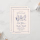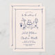 Diese Hochzeitseinladung basiert auf dem beliebten, von Hand gezeichnet Trend, der französische oder italienische Küche und Getränke in einem skurrilen, doodle, scribble Stil anbietet. Dieses Design ist ideal für eine entspannte, lässige Hochzeit in einem Garten. Es bietet bezaubernde handgezeichnete Illustrationen einer Vase von Blume, Champagner-Flasche, Hochzeitskuchen, Kerzenhalter und Weingläser.