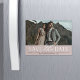 Ein moderner Datums-Magnet, der für ein Single-Foto mit horizontaler oder landschaftsorientierter Verlobung konzipiert ist. "Save the Date" erscheint unterhalb in schicker Blockschrift und Schriftzeichen, mit Ihren Namen, Hochzeitstermin und Hochzeitsort darunter, zusammen mit Ihrer Hochzeitswebsite oder weiteren Details.