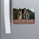 Ein moderner Datums-Magnet, der für Ihr beliebtes, horizontal oder landschaftsorientiertes Vollblut-Verlobung-Foto konzipiert ist. Unter Ihrem Foto erscheint "Save the Date" in weißem Block und Schriftzeichen, zusammen mit Ihren Namen, Hochzeitstag und Hochzeitsort. Benutzen Sie die zusätzliche Textzeile, um Ihre Hochzeitswebsite oder weitere Details zu teilen.