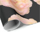 Ein weiches pfirsichgelbes Rose blüht ein Foto auf einem schwarzen Hintergrund auf dem Packpapier gedruckt. Eine auffällige Kombination! Ideal für Hochzeiten, Geburtstage, Jubiläen, Muttertag, etc. Dieses Foto wurde im Mesa Community Uni Rose Garden in Mesa, Arizona aufgenommen. Original Fotografie Copyright 2018 von Karen Coffelt.