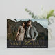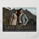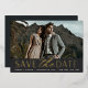 Eine moderne Save the Date-Karte, die für Ihr beliebtes, horizontal oder landschaftsorientiertes Vollblutkarton-Foto entwickelt wurde. Unter Ihrem Foto erscheint "Save the Date" in Goldfolienblöcken und Schriftzeichen, zusammen mit Ihren Namen, Ihrem Hochzeitstag und Ihrem Hochzeitsort. Personalisieren Sie den Rücken mit weiteren Details, wie z.B. Ihre Hochzeitswebsite.
