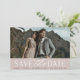 Eine moderne Save the Date-Karte, die für Ihr beliebtes, horizontal oder landschaftsorientiertes Vollblutkarton-Foto entwickelt wurde. "Save the Date" erscheint unter Ihrem Foto in schicken Blockschrift und Schriftzeichen, zusammen mit Ihren Namen, Hochzeitstag und Hochzeitsort. Karten werden rückwärts gedreht, um zusätzliche Save the Date Details zu zeigen.