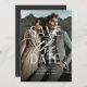 Eine moderne Save the Date-Karte, die speziell für Ihr Lieblings-Foto in vertikaler oder porträtorientierter Vollblutkarte entwickelt wurde. "Save the Date" überlagert sich im Zentrum Ihres Fotos in Weißblöcken und Schriftzeichen, mit Ihren Namen, Hochzeitstag und Hochzeitsort darunter. Postkarten werden zurückgesetzt, um zusätzliche Save the Date Details anzuzeigen.