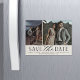 Ein moderner Magnet speichert den Datumsmagneten, der für zwei Verlobungen Fotos ausgelegt ist, die nebeneinander angeordnet sind. Unter Ihren Fotos erscheint "Save the Date" in schicken Blockschrift und Schriftzeichen, darunter Ihr Name, Ihr Hochzeitstag und Ihr Hochzeitsort, sowie Ihre Hochzeitswebsite oder weitere Details.