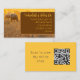 Visitenkarten für Fiber-Unternehmen. Schafweiden in einem Wiesenbild ist der Hintergrund für Textfelder außerhalb des Set. Die Farben sind goldfarben und braun mit Text auf beiden Seiten. Fügen Sie auch den QR-Code Ihres Shops auf der Rückseite ein. Ideal für Garnfirmen, Kunsthandwerker, Wollmakler oder Stricklehrer.