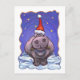 Animal Parade Festival Hippo Weihnachtsgeschenke und Accessoires präsentiert unser lustiges Kunstwerk eines niedlichen Hippo-Decks in einer roten Weihnachtsmannmütze, stehend in einer schneebedeckten Landschaft, gegen einen strukturierten dunkelblauen Sternenhimmel, der von unserem talentierten Kinderillustrator Traci Van Wagoner gemalt wurde. Auf der Rückseite dieser lustigen Safari Tiergeschenke finden Sie auch unser skurriles Nilpferd vom Rücken mit einem heiligen Kranz mit einem roten Weihnachtsbogen. Unsere festliche Hippo-Kunst macht einzigartige Geschenke für Weihnachtsliebhaber, Hippo-Liebhaber, Tierfreunde, Safari-Tierfreunde, afrikanische Tierfreunde und niedliche Kunstliebhaber in dieser Urlaubszeit.