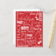 Die Weihnachtsworte in verschiedenen Schriften machen eine Collage auf dieser Postkarte. Weihnachtssymbole sind zwischen den Wörtern verteilt. Fügen Sie auf der Rückseite Ihre eigene Urlaubsnachricht hinzu. Erhältlich in alternativen Farben mit passenden Produkten.
