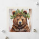 Diese flache Urlaubskarte ist mit einem Aquarellbären geschmückt, der mit einer Krone aus Kleider geschmückt ist. Der Text "Happy Holidays!" kann bearbeitet werden und der Rücken ist ein schlichtes Creme, in dem eine personalisierte Nachricht geschrieben werden kann.