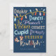 Feiern Sie die magische und festliche Urlaubssaison mit unseren maßgeschneiderten Fotokarten für Ihren Urlaub. Das Design enthält alle Rentiernamen "Dasher, Dancer, Prancer, Vixen, Comet, Cupid, Donner, Blitzen und Rudolph, die typografisch für diese helle, lustige und festliche Urlaubskarte entworfen wurden. Hangende Weihnachtsleuchten sind in das typografische Design integriert. Auf der Rückseite befindet sich ein Platzhalter für Fotos mit hängenden Weihnachtsbeleuchtung. Alle Illustrationen in diesem festlichen Rentier und Lichter typografische Urlaubsfotokarte sind handgezeichnete Original-Kunstwerke von Moodthology. Sie können die Textgröße, den Schriftart und das Layout individuell an Ihre individuellen Wünsche anpassen.
