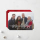 Moderne Urlaubskarte mit dem Satz "Frohe Weihnachten" in einer weißen handgeschriebenen Schrift. Ihr Foto wird dahinter angezeigt. Der Rücken ist bedrückt rot, kann aber auf Wunsch geändert werden. Löschen Sie einfach die rote Ebene und wählen Sie eine Farbe aus der Palette oder verwenden Sie Ihren eigenen Hex-Code.