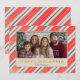 Feiern Sie mit dieser personalisierten Weihnachtskarte den Zauber der Weihnachtszeit mit einem festlichen roten, grünen und goldenen Streifen-Design. Fügen Sie Ihr Foto hinzu und passen Sie Ihren Nachnamen an, um einen einzigartigen Urlaubssinn zu erhalten. Ideal, um Liebenden zu schicken und die Freude der Saison zu teilen.