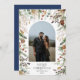 Heilige Weihnachten moderne elegante Wasserfarbe getrocknete botanische florale Maultierfarben Urlaubbogen 1 Foto Weihnachtskarte. Navy-Backer.