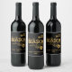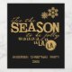 Ein Wein- oder Schaumweinflaschen-Etikett, das zu unserem Design dieser Saison passt, mit typografischem Text aus Gold auf schwarzem Hintergrund, der lautet: Das ist die Jahreszeit für Jolly, goldene Schneeflocken, und hat einen Bereich, um mit Ihrem Namen und Event zu personalisieren!