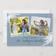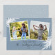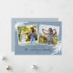 Diese 2-Foto Weihnachtskarte ist mit immergrünen Zweigen in Weiß akzentuiert. Der staubige blaue Hintergrund zeichnet sich durch weißen Schnee ab.
