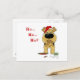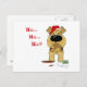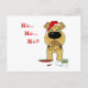 Airedale Terrier, das versucht, mit dem Essen alle Sankt Plätzchen weg zu erhalten. Airedale trägt eine Weihnachtsmannmütze, mit Ingwerbrotmann in seinem Mund mit Titel, der liest, "Ho… Ho… Ho???"