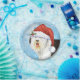 Feiern Sie die Urlaubssaison mit einem niedlichen Old English Sheepdog mit einer Weihnachtsmannmütze inmitten von Schneeflocken. Gute Ferien!