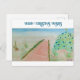 Wasserfarbe Weihnachtsbaum am Strand mit warmen Weihnachtswünschen als Gruß auf einer Postkarte.