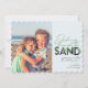 Eine moderne Urlaubskarte mit einer einfachen minimalen Botschaft, die lautet: "Dashing through the sand" mit Palmen kombiniert mit handgeschriebener Typografie. Personalisieren Sie Ihre Namen und Ihr Lieblingsbild. Bild von Vitolda Klein auf Unsplash