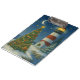 Ein festlicher Hummerfalle-Baum mit Bojen und Lichtern steht an einem schneebedeckten Leuchtturm unter einem Sternenhimmel. Inspiriert von Weihnachten in Maine.