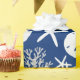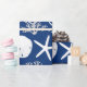 Schönes Weihnachtspapier an der Küste zeigt ein Muster von Seestern, Sand-Dollar-und Glitzer-Korallen in einem marineblau-weiß-Farbschema. *Wenn Sie dieses Design für weitere Produkte wünschen oder Designhilfe benötigen, kontaktieren Sie mich bitte über den Zazzle Chat.
