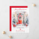 Diese festliche, bewegende Ankündigung enthält das Sprichwort "Frohe Weihnachten von unserer neuen Zuhause" mit einer schönen, wasserfarbenen Haustür, die mit Weihnachtsbäumen und Kranken geschmückt ist. Die Ankündigung ist ideal für den Versand an Freunde und Familie während der Ferienzeit, um ihnen lassen, dass sie über Ihre neue Adresse wissen. Auf der Vorderseite der Ankündigung befinden sich die rote Eingangstür mit Sprichwort und Aquarellfarbe sowie Ihre neue Adresse und Kontaktdaten. Das Gesamtdesign ist festlich und einladend, und die Ankündigung wird sicher ein Lächeln auf die Gesichter Ihrer Lieben.