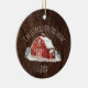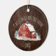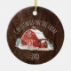 Feiern Sie dieses Jahr Weihnachten auf dem Bauernhof! Dieses Ornament zeichnet sich durch ein rustikales Holzhintergrundbild aus. Auf dem Hintergrund befindet sich eine Aquarellhalle, Bäume und Schnee. Die Worte "Weihnachten auf dem Bauernhof" Bogen über der Scheune, und unter der Abbildung ist Platz für Sie, das Jahr anzupassen. Lade dein Foto auf die Rückseite des Ornaments hoch und füge Text hinzu!