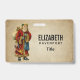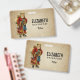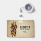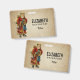 Ein Namensschild mit einem Vintagen Weihnachtsmann der Alten Welt. Klassische alte Welt santa, mit seinem berühmten roten Mantel und einer Tasche voller Spielzeuge. Dieser altmodische Weihnachtsmann ist schlank und hält einen Gehstock, um durch das Land zu reisen und allen Mädchen und Jungen Spielzeuge zu schenken. Alter Pergamentstil.