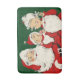 Eine alte Retro-Vintage Santa-Claus-Familie aus einer alten Weihnachtskarte, mit Santa, Mrs. Claus und einem kleinen Kinderklaus, perfekt für einen unterhaltsamen Retro-Urlaub.