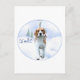 Weihnachten. Evergreens, ein schneebedeckter Hintergrund, und der Beagle wünscht Ihnen eine friedliche Weihnachtszeit. Unser Hundedesign ist ein tolles Geschenk für Sie oder einen Freund.
