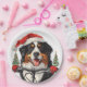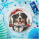 Niedliche Darstellung eines Berner Berghundes, gekleidet als Weihnachtsmann, der mit dem Fahrrad fährt. Ideal für Hundeliebhaber und Hundeeltern während der Ferienzeit.
