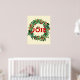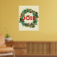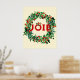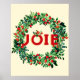 Das große Wort "JOIE", Französisch für "Freude" in einem üppigen immergrünen Blau- und Rotweinkranz auf cremefarbenem Hintergrund für ein effektives und festliches Zuhause-Dekor.