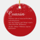 Personalisieren Sie mit Ihrer speziellen Cousin-Definition, um ein einzigartiges Weihnachtsgeschenk zu schaffen. Ein perfekter Weg, ihnen zu zeigen, wie phantastisch sie nicht nur zu Weihnachten, sondern jeden Tag sind. Sie können sogar die Hintergrundfarbe an Ihre Lieblingsfarbe anpassen. Entwickelt von Thisisnotme©