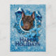Dieses ist ein schöner Weihnachtsfeiertag Entwurf angerufener Blue Snowflakes, die einen Dobermannhund kennzeichnet, den ich fotografiert habe.