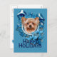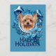 Das ist ein wunderschönes Weihnachtsgeschmacksdesign namens Blue Snowflakes mit einem Yorkshire Terrier Hund.