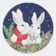 Weihnachten Bunny Rabbit Snow Grüne Holiday Art Runder Aufkleber