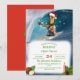 chihuahua Weihnachtshundtier , Surfbrett Splash Sport, sommerlicher tropischer Strand des Ozeans, Surfsurfwasser, Seywave Freund kleiner, niedlicher Canyine x-mas Spaß, Haustier glücklicher Winterwelpen, lustiger, fröhlicher Roter Hut, Weihnachtsclaus, Tierchihuahua Weihnachtshund ,