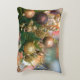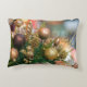 Weihnachtskissen mit Bildern von Weihnachtsbaum und Ornamenten.