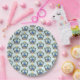 Dieses bezaubernde Muster zeichnet sich durch eine Aquarellnativität auf einem hellblauen Hintergrund aus.