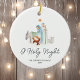 Dieses personalisierte Weihnachtsschmuck ist eine schöne Ergänzung zu jedem Baum. Mit einer wunderschönen Krippe in Aquarellfarben auf einem knusprigen, weißen Hintergrund erweckt dieser Schmuck das Wesen der Saison auf atemberaubende und zeitlose Weise. Die Botschaft "O Heilige Nacht" fügt dem Design eine zusätzliche Touch von Ehrfurcht und Sinn hinzu und macht es somit perfekt für diejenigen, die gewollt haben, die religiöse Bedeutung von Weihnachten zu feiern. Und mit einer sternförmigen Rückseite ist dieses Ornament von hinten genauso schön wie von vorne. Sie können es mit Ihrem Familiennamen anpassen, was es zu einem einzigartigen und hochgeschätzten Sake für die nächsten Jahre macht.