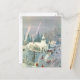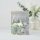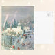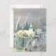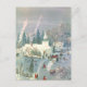 Vintage Illustration Weihnachtsfeiertag religiöses Design mit einer niedlichen Kapelle in der Wintersaison mit schneebedeckten Bäumen. Die Leute kommen in gezeichnet Pferdekutschen an, und Rauch steigt aus den Schornsteinen.